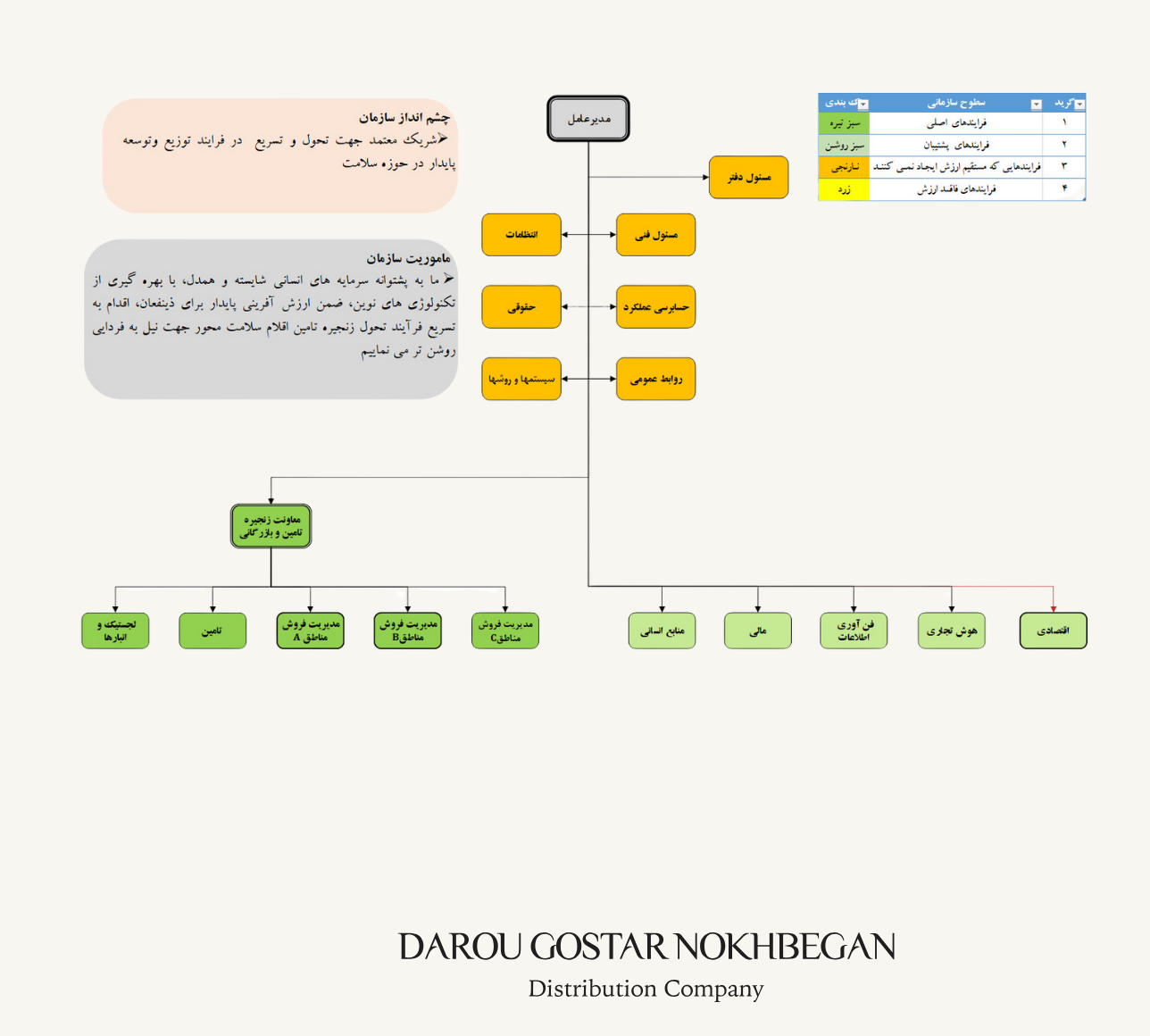 داروگسترنخبگان با بهره مندی از پرسنل کارآمد و متخصص در دپارتمان های مربوطه و با داشتــــن امکانات گسترده وارد صنعت توزیع دارو شــده و در عرصــــه بازار دارویی کشور در کوتاه ترین زمان ممکن مطرح گردیده است. شکل زیر به صورت خلاصه تاپ چارت سازمانی این شرکت را نشان میدهد.